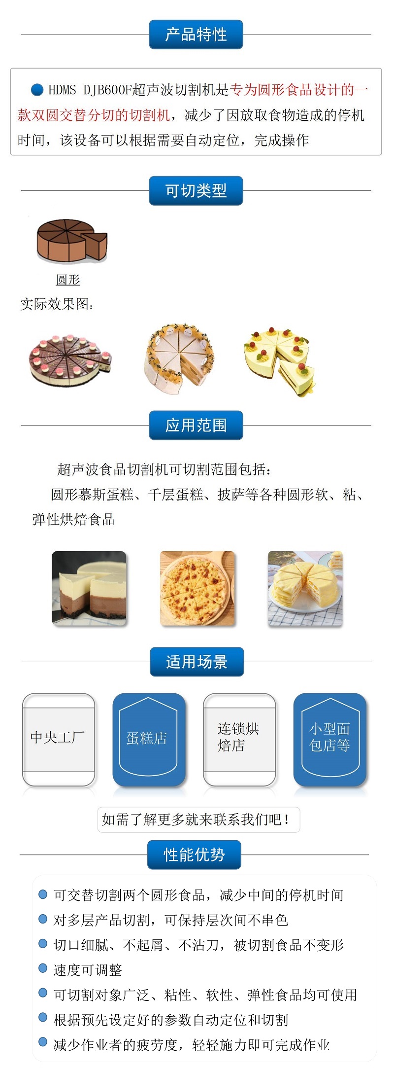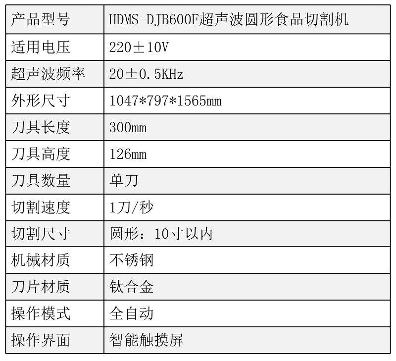 該設備配備單把超聲波刀片,可切圓形(只限一個圓蛋糕),也可切方形 |