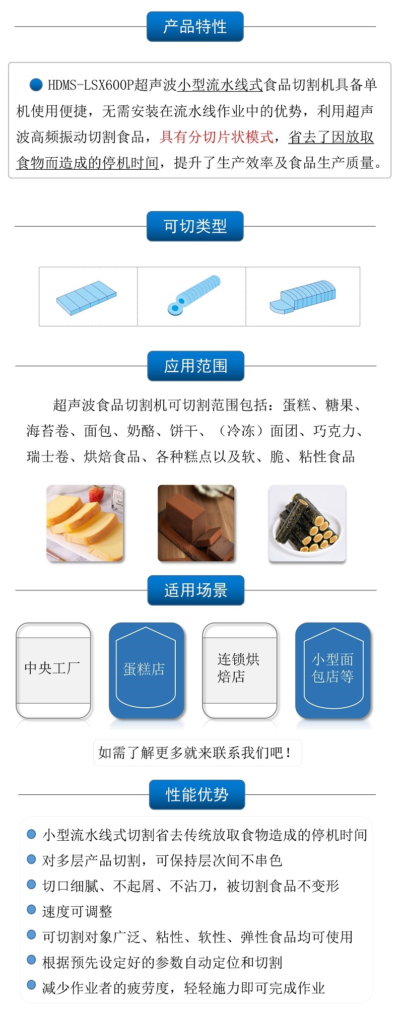 該設備配備雙把超聲波刀片,既可切方蛋糕,也可同時切兩個圓蛋糕,效率更高